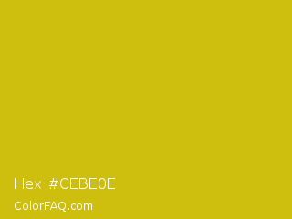 Hex #cebe0e Color is a normal yellow color and the nearest color is Gold Tips #deba13. Hex code #cebe0e and RGB value is rgb(206,190,14). In RGB color space, this color is composed of 81% red, 75% green, 5% blue, In CMYK color space, this color is composed of 0% cyan, 8% magenta, 93% yellow , 19% black , In HSL color space, this color has a hue angle of 55° , 87% saturation and 43% lightness.