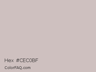 Hex #cec0bf Color is a light red color and the nearest color is Silver Rust #c9c0bb. Hex code #cec0bf and RGB value is rgb(206,192,191). In RGB color space, this color is composed of 81% red, 75% green, 75% blue, In CMYK color space, this color is composed of 0% cyan, 7% magenta, 7% yellow , 19% black , In HSL color space, this color has a hue angle of 4° , 13% saturation and 78% lightness.