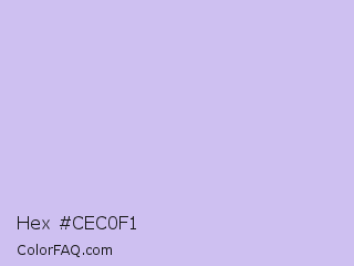 Hex #cec0f1 Color is a very light indigo color and the nearest color is Perfume #d0bef8. Hex code #cec0f1 and RGB value is rgb(206,192,241). In RGB color space, this color is composed of 81% red, 75% green, 95% blue, In CMYK color space, this color is composed of 15% cyan, 20% magenta, 0% yellow , 5% black , In HSL color space, this color has a hue angle of 257° , 64% saturation and 85% lightness.