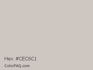 Hex #cec6c1 Color is a light orange color and the nearest color is Cloud #c7c4bf. Hex code #cec6c1 and RGB value is rgb(206,198,193). In RGB color space, this color is composed of 81% red, 78% green, 76% blue, In CMYK color space, this color is composed of 0% cyan, 4% magenta, 6% yellow , 19% black , In HSL color space, this color has a hue angle of 23° , 12% saturation and 78% lightness.