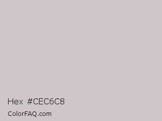 Hex #cec6c8 Color is a light red color and the nearest color is Swirl #d3cdc5. Hex code #cec6c8 and RGB value is rgb(206,198,200). In RGB color space, this color is composed of 81% red, 78% green, 78% blue, In CMYK color space, this color is composed of 0% cyan, 4% magenta, 3% yellow , 19% black , In HSL color space, this color has a hue angle of 345° , 8% saturation and 79% lightness.