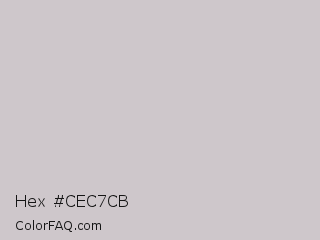 Hex #cec7cb Color is a light magenta color and the nearest color is Swirl #d3cdc5. Hex code #cec7cb and RGB value is rgb(206,199,203). In RGB color space, this color is composed of 81% red, 78% green, 80% blue, In CMYK color space, this color is composed of 0% cyan, 3% magenta, 1% yellow , 19% black , In HSL color space, this color has a hue angle of 326° , 7% saturation and 79% lightness.