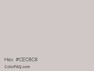 Hex #cec8c8 Color is a light red color and the nearest color is Swirl #d3cdc5. Hex code #cec8c8 and RGB value is rgb(206,200,200). In RGB color space, this color is composed of 81% red, 78% green, 78% blue, In CMYK color space, this color is composed of 0% cyan, 3% magenta, 3% yellow , 19% black , In HSL color space, this color has a hue angle of 0° , 6% saturation and 80% lightness.