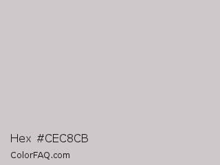 Hex #cec8cb Color is a light rose color and the nearest color is Swirl #d3cdc5. Hex code #cec8cb and RGB value is rgb(206,200,203). In RGB color space, this color is composed of 81% red, 78% green, 80% blue, In CMYK color space, this color is composed of 0% cyan, 3% magenta, 1% yellow , 19% black , In HSL color space, this color has a hue angle of 330° , 6% saturation and 80% lightness.