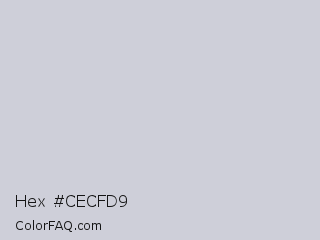 Hex #cecfd9 Color is a very light blue color and the nearest color is Mischka #d1d2dd. Hex code #cecfd9 and RGB value is rgb(206,207,217). In RGB color space, this color is composed of 81% red, 81% green, 85% blue, In CMYK color space, this color is composed of 5% cyan, 5% magenta, 0% yellow , 15% black , In HSL color space, this color has a hue angle of 235° , 13% saturation and 83% lightness.