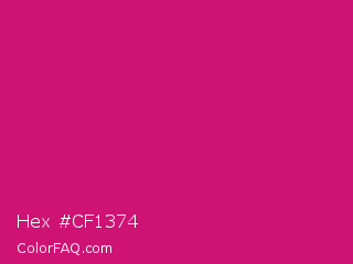 Hex #cf1374 Color is a normal rose color and the nearest color is Magenta Dye #ca1f7b. Hex code #cf1374 and RGB value is rgb(207,19,116). In RGB color space, this color is composed of 81% red, 7% green, 45% blue, In CMYK color space, this color is composed of 0% cyan, 91% magenta, 44% yellow , 19% black , In HSL color space, this color has a hue angle of 329° , 83% saturation and 44% lightness.