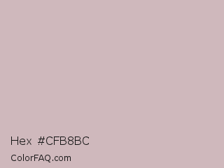 Hex #cfb8bc Color is a light red color and the nearest color is Cold Turkey #cebaba. Hex code #cfb8bc and RGB value is rgb(207,184,188). In RGB color space, this color is composed of 81% red, 72% green, 74% blue, In CMYK color space, this color is composed of 0% cyan, 11% magenta, 9% yellow , 19% black , In HSL color space, this color has a hue angle of 350° , 19% saturation and 77% lightness.
