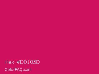 Hex #d0105d Color is a normal rose color and the nearest color is Debian Red #d70a53. Hex code #d0105d and RGB value is rgb(208,16,93). In RGB color space, this color is composed of 82% red, 6% green, 36% blue, In CMYK color space, this color is composed of 0% cyan, 92% magenta, 55% yellow , 18% black , In HSL color space, this color has a hue angle of 336° , 86% saturation and 44% lightness.