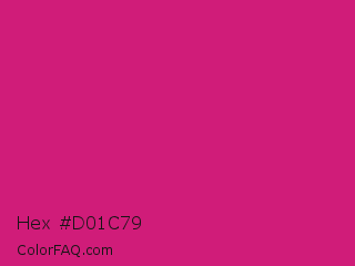 Hex #d01c79 Color is a normal rose color and the nearest color is Magenta Dye #ca1f7b. Hex code #d01c79 and RGB value is rgb(208,28,121). In RGB color space, this color is composed of 82% red, 11% green, 47% blue, In CMYK color space, this color is composed of 0% cyan, 87% magenta, 42% yellow , 18% black , In HSL color space, this color has a hue angle of 329° , 76% saturation and 46% lightness.