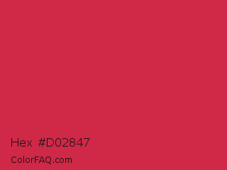 Hex #d02847 Color is a normal red color and the nearest color is French Raspberry #c72c48. Hex code #d02847 and RGB value is rgb(208,40,71). In RGB color space, this color is composed of 82% red, 16% green, 28% blue, In CMYK color space, this color is composed of 0% cyan, 81% magenta, 66% yellow , 18% black , In HSL color space, this color has a hue angle of 349° , 68% saturation and 49% lightness.