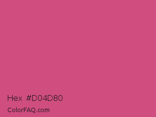 Hex #d04d80 Color is a normal rose color and the nearest color is Mystic #d65282. Hex code #d04d80 and RGB value is rgb(208,77,128). In RGB color space, this color is composed of 82% red, 30% green, 50% blue, In CMYK color space, this color is composed of 0% cyan, 63% magenta, 38% yellow , 18% black , In HSL color space, this color has a hue angle of 337° , 58% saturation and 56% lightness.