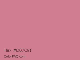 Hex #d07c91 Color is a light red color and the nearest color is Charm #d47494. Hex code #d07c91 and RGB value is rgb(208,124,145). In RGB color space, this color is composed of 82% red, 49% green, 57% blue, In CMYK color space, this color is composed of 0% cyan, 40% magenta, 30% yellow , 18% black , In HSL color space, this color has a hue angle of 345° , 47% saturation and 65% lightness.
