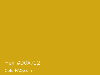 Hex #d0a712 Color is a normal yellow color and the nearest color is Lemon Curry #cca01d. Hex code #d0a712 and RGB value is rgb(208,167,18). In RGB color space, this color is composed of 82% red, 65% green, 7% blue, In CMYK color space, this color is composed of 0% cyan, 20% magenta, 91% yellow , 18% black , In HSL color space, this color has a hue angle of 47° , 84% saturation and 44% lightness.
