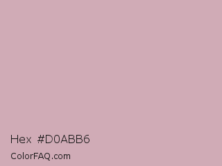 Hex #d0abb6 Color is a light rose color and the nearest color is Lily #c8aabf. Hex code #d0abb6 and RGB value is rgb(208,171,182). In RGB color space, this color is composed of 82% red, 67% green, 71% blue, In CMYK color space, this color is composed of 0% cyan, 18% magenta, 13% yellow , 18% black , In HSL color space, this color has a hue angle of 342° , 28% saturation and 74% lightness.