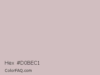 Hex #d0bec1 Color is a light red color and the nearest color is Cold Turkey #cebaba. Hex code #d0bec1 and RGB value is rgb(208,190,193). In RGB color space, this color is composed of 82% red, 75% green, 76% blue, In CMYK color space, this color is composed of 0% cyan, 9% magenta, 7% yellow , 18% black , In HSL color space, this color has a hue angle of 350° , 16% saturation and 78% lightness.