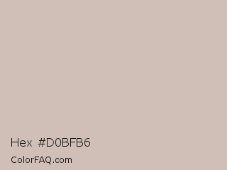 Hex #d0bfb6 Color is a light orange color and the nearest color is Cold Turkey #cebaba. Hex code #d0bfb6 and RGB value is rgb(208,191,182). In RGB color space, this color is composed of 82% red, 75% green, 71% blue, In CMYK color space, this color is composed of 0% cyan, 8% magenta, 13% yellow , 18% black , In HSL color space, this color has a hue angle of 21° , 22% saturation and 76% lightness.