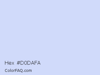 Hex #d0dafa Color is a very light blue color and the nearest color is Hawkes Blue #d4e2fc. Hex code #d0dafa and RGB value is rgb(208,218,250). In RGB color space, this color is composed of 82% red, 85% green, 98% blue, In CMYK color space, this color is composed of 17% cyan, 13% magenta, 0% yellow , 2% black , In HSL color space, this color has a hue angle of 226° , 81% saturation and 90% lightness.