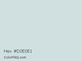 Hex #d0e0e1 Color is a very light cyan color and the nearest color is Geyser #d4dfe2. Hex code #d0e0e1 and RGB value is rgb(208,224,225). In RGB color space, this color is composed of 82% red, 88% green, 88% blue, In CMYK color space, this color is composed of 8% cyan, 0% magenta, 0% yellow , 12% black , In HSL color space, this color has a hue angle of 184° , 22% saturation and 85% lightness.