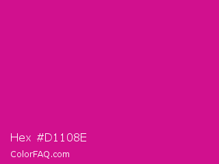 Hex #d1108e Color is a normal magenta color and the nearest color is Red Violet #c71585. Hex code #d1108e and RGB value is rgb(209,16,142). In RGB color space, this color is composed of 82% red, 6% green, 56% blue, In CMYK color space, this color is composed of 0% cyan, 92% magenta, 32% yellow , 18% black , In HSL color space, this color has a hue angle of 321° , 86% saturation and 44% lightness.
