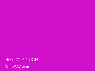 Hex #d110cb Color is a normal magenta color and the nearest color is Deep Magenta #cc00cc. Hex code #d110cb and RGB value is rgb(209,16,203). In RGB color space, this color is composed of 82% red, 6% green, 80% blue, In CMYK color space, this color is composed of 0% cyan, 92% magenta, 3% yellow , 18% black , In HSL color space, this color has a hue angle of 302° , 86% saturation and 44% lightness.