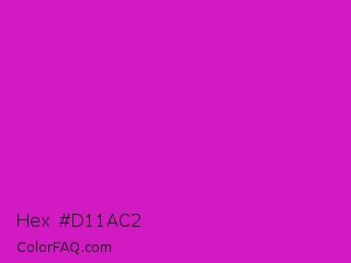 Hex #d11ac2 Color is a normal magenta color and the nearest color is Steel Pink #cc33cc. Hex code #d11ac2 and RGB value is rgb(209,26,194). In RGB color space, this color is composed of 82% red, 10% green, 76% blue, In CMYK color space, this color is composed of 0% cyan, 88% magenta, 7% yellow , 18% black , In HSL color space, this color has a hue angle of 305° , 78% saturation and 46% lightness.