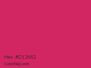 Hex #d12662 Color is a normal rose color and the nearest color is Dogwood Rose #d71868. Hex code #d12662 and RGB value is rgb(209,38,98). In RGB color space, this color is composed of 82% red, 15% green, 38% blue, In CMYK color space, this color is composed of 0% cyan, 82% magenta, 53% yellow , 18% black , In HSL color space, this color has a hue angle of 339° , 69% saturation and 48% lightness.
