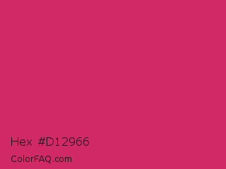 Hex #d12966 Color is a normal rose color and the nearest color is Cerise Red #de3163. Hex code #d12966 and RGB value is rgb(209,41,102). In RGB color space, this color is composed of 82% red, 16% green, 40% blue, In CMYK color space, this color is composed of 0% cyan, 80% magenta, 51% yellow , 18% black , In HSL color space, this color has a hue angle of 338° , 67% saturation and 49% lightness.