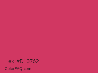 Hex #d13762 Color is a normal rose color and the nearest color is Cerise Red #de3163. Hex code #d13762 and RGB value is rgb(209,55,98). In RGB color space, this color is composed of 82% red, 22% green, 38% blue, In CMYK color space, this color is composed of 0% cyan, 74% magenta, 53% yellow , 18% black , In HSL color space, this color has a hue angle of 343° , 63% saturation and 52% lightness.