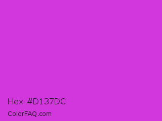 Hex #d137dc Color is a normal magenta color and the nearest color is Steel Pink #cc33cc. Hex code #d137dc and RGB value is rgb(209,55,220). In RGB color space, this color is composed of 82% red, 22% green, 86% blue, In CMYK color space, this color is composed of 5% cyan, 75% magenta, 0% yellow , 14% black , In HSL color space, this color has a hue angle of 296° , 70% saturation and 54% lightness.