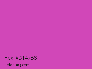 Hex #d147b8 Color is a normal magenta color and the nearest color is Fuchsia Pink #c154c1. Hex code #d147b8 and RGB value is rgb(209,71,184). In RGB color space, this color is composed of 82% red, 28% green, 72% blue, In CMYK color space, this color is composed of 0% cyan, 66% magenta, 12% yellow , 18% black , In HSL color space, this color has a hue angle of 311° , 60% saturation and 55% lightness.