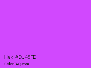 Hex #d148fe Color is a light purple color and the nearest color is Heliotrope #df73ff. Hex code #d148fe and RGB value is rgb(209,72,254). In RGB color space, this color is composed of 82% red, 28% green, 100% blue, In CMYK color space, this color is composed of 18% cyan, 72% magenta, 0% yellow , 0% black , In HSL color space, this color has a hue angle of 285° , 99% saturation and 64% lightness.
