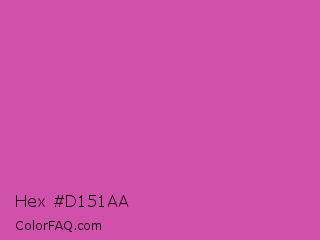 Hex #d151aa Color is a normal magenta color and the nearest color is Pink Pantone #d74894. Hex code #d151aa and RGB value is rgb(209,81,170). In RGB color space, this color is composed of 82% red, 32% green, 67% blue, In CMYK color space, this color is composed of 0% cyan, 61% magenta, 19% yellow , 18% black , In HSL color space, this color has a hue angle of 318° , 58% saturation and 57% lightness.