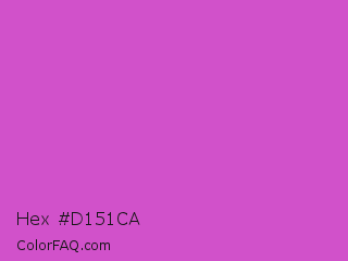 Hex #d151ca Color is a normal magenta color and the nearest color is Fuchsia Pink #c154c1. Hex code #d151ca and RGB value is rgb(209,81,202). In RGB color space, this color is composed of 82% red, 32% green, 79% blue, In CMYK color space, this color is composed of 0% cyan, 61% magenta, 3% yellow , 18% black , In HSL color space, this color has a hue angle of 303° , 58% saturation and 57% lightness.