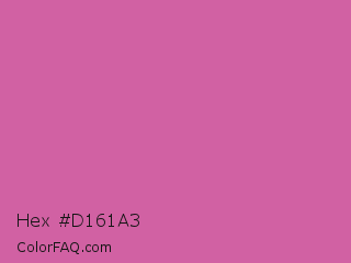 Hex #d161a3 Color is a normal magenta color and the nearest color is Super Pink #cf6ba9. Hex code #d161a3 and RGB value is rgb(209,97,163). In RGB color space, this color is composed of 82% red, 38% green, 64% blue, In CMYK color space, this color is composed of 0% cyan, 54% magenta, 22% yellow , 18% black , In HSL color space, this color has a hue angle of 325° , 55% saturation and 60% lightness.