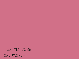 Hex #d17088 Color is a light red color and the nearest color is Charm #d47494. Hex code #d17088 and RGB value is rgb(209,112,136). In RGB color space, this color is composed of 82% red, 44% green, 53% blue, In CMYK color space, this color is composed of 0% cyan, 46% magenta, 35% yellow , 18% black , In HSL color space, this color has a hue angle of 345° , 51% saturation and 63% lightness.
