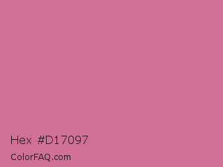 Hex #d17097 Color is a light rose color and the nearest color is Charm #d47494. Hex code #d17097 and RGB value is rgb(209,112,151). In RGB color space, this color is composed of 82% red, 44% green, 59% blue, In CMYK color space, this color is composed of 0% cyan, 46% magenta, 28% yellow , 18% black , In HSL color space, this color has a hue angle of 336° , 51% saturation and 63% lightness.