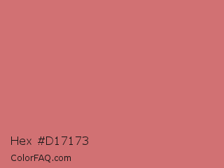 Hex #d17173 Color is a light red color and the nearest color is Contessa #c6726b. Hex code #d17173 and RGB value is rgb(209,113,115). In RGB color space, this color is composed of 82% red, 44% green, 45% blue, In CMYK color space, this color is composed of 0% cyan, 46% magenta, 45% yellow , 18% black , In HSL color space, this color has a hue angle of 359° , 51% saturation and 63% lightness.