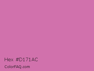 Hex #d171ac Color is a light magenta color and the nearest color is Sky Magenta #cf71af. Hex code #d171ac and RGB value is rgb(209,113,172). In RGB color space, this color is composed of 82% red, 44% green, 67% blue, In CMYK color space, this color is composed of 0% cyan, 46% magenta, 18% yellow , 18% black , In HSL color space, this color has a hue angle of 323° , 51% saturation and 63% lightness.