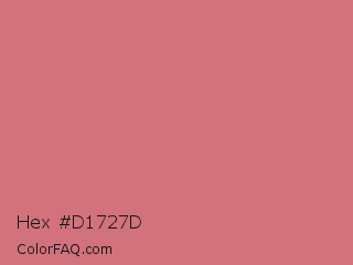 Hex #d1727d Color is a light red color and the nearest color is New York Pink #d7837f. Hex code #d1727d and RGB value is rgb(209,114,125). In RGB color space, this color is composed of 82% red, 45% green, 49% blue, In CMYK color space, this color is composed of 0% cyan, 45% magenta, 40% yellow , 18% black , In HSL color space, this color has a hue angle of 353° , 51% saturation and 63% lightness.