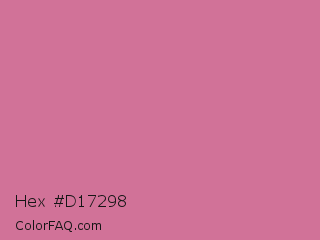 Hex #d17298 Color is a light rose color and the nearest color is Charm #d47494. Hex code #d17298 and RGB value is rgb(209,114,152). In RGB color space, this color is composed of 82% red, 45% green, 60% blue, In CMYK color space, this color is composed of 0% cyan, 45% magenta, 27% yellow , 18% black , In HSL color space, this color has a hue angle of 336° , 51% saturation and 63% lightness.