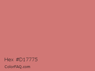 Hex #d17775 Color is a light red color and the nearest color is Contessa #c6726b. Hex code #d17775 and RGB value is rgb(209,119,117). In RGB color space, this color is composed of 82% red, 47% green, 46% blue, In CMYK color space, this color is composed of 0% cyan, 43% magenta, 44% yellow , 18% black , In HSL color space, this color has a hue angle of 1° , 50% saturation and 64% lightness.