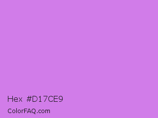 Hex #d17ce9 Color is a light purple color and the nearest color is Bright Lilac #d891ef. Hex code #d17ce9 and RGB value is rgb(209,124,233). In RGB color space, this color is composed of 82% red, 49% green, 91% blue, In CMYK color space, this color is composed of 10% cyan, 47% magenta, 0% yellow , 9% black , In HSL color space, this color has a hue angle of 287° , 71% saturation and 70% lightness.