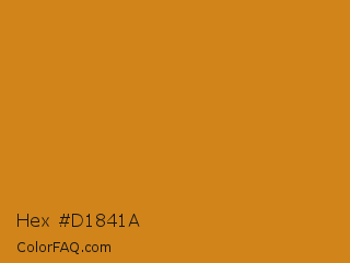 Hex #d1841a Color is a normal orange color and the nearest color is Meteor #d07d12. Hex code #d1841a and RGB value is rgb(209,132,26). In RGB color space, this color is composed of 82% red, 52% green, 10% blue, In CMYK color space, this color is composed of 0% cyan, 37% magenta, 88% yellow , 18% black , In HSL color space, this color has a hue angle of 35° , 78% saturation and 46% lightness.