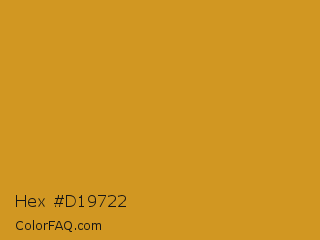 Hex #d19722 Color is a normal orange color and the nearest color is Geebung #d18f1b. Hex code #d19722 and RGB value is rgb(209,151,34). In RGB color space, this color is composed of 82% red, 59% green, 13% blue, In CMYK color space, this color is composed of 0% cyan, 28% magenta, 84% yellow , 18% black , In HSL color space, this color has a hue angle of 40° , 72% saturation and 48% lightness.