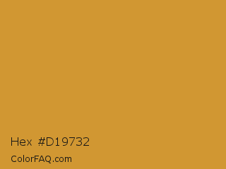 Hex #d19732 Color is a normal orange color and the nearest color is Satin Sheen Gold #cba135. Hex code #d19732 and RGB value is rgb(209,151,50). In RGB color space, this color is composed of 82% red, 59% green, 20% blue, In CMYK color space, this color is composed of 0% cyan, 28% magenta, 76% yellow , 18% black , In HSL color space, this color has a hue angle of 38° , 63% saturation and 51% lightness.