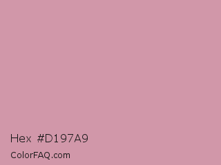 Hex #d197a9 Color is a light rose color and the nearest color is Careys Pink #d29eaa. Hex code #d197a9 and RGB value is rgb(209,151,169). In RGB color space, this color is composed of 82% red, 59% green, 66% blue, In CMYK color space, this color is composed of 0% cyan, 28% magenta, 19% yellow , 18% black , In HSL color space, this color has a hue angle of 341° , 39% saturation and 71% lightness.