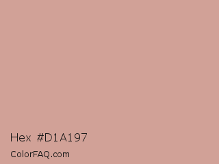 Hex #d1a197 Color is a light red color and the nearest color is Eunry #cfa39d. Hex code #d1a197 and RGB value is rgb(209,161,151). In RGB color space, this color is composed of 82% red, 63% green, 59% blue, In CMYK color space, this color is composed of 0% cyan, 23% magenta, 28% yellow , 18% black , In HSL color space, this color has a hue angle of 10° , 39% saturation and 71% lightness.