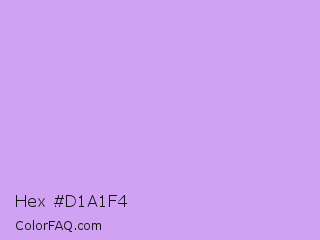 Hex #d1a1f4 Color is a light purple color and the nearest color is Bright Ube #d19fe8. Hex code #d1a1f4 and RGB value is rgb(209,161,244). In RGB color space, this color is composed of 82% red, 63% green, 96% blue, In CMYK color space, this color is composed of 14% cyan, 34% magenta, 0% yellow , 4% black , In HSL color space, this color has a hue angle of 275° , 79% saturation and 79% lightness.