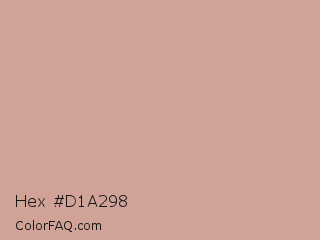 Hex #d1a298 Color is a light red color and the nearest color is Eunry #cfa39d. Hex code #d1a298 and RGB value is rgb(209,162,152). In RGB color space, this color is composed of 82% red, 64% green, 60% blue, In CMYK color space, this color is composed of 0% cyan, 22% magenta, 27% yellow , 18% black , In HSL color space, this color has a hue angle of 11° , 38% saturation and 71% lightness.