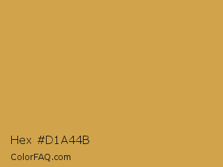 Hex #d1a44b Color is a normal orange color and the nearest color is Roti #c6a84b. Hex code #d1a44b and RGB value is rgb(209,164,75). In RGB color space, this color is composed of 82% red, 64% green, 29% blue, In CMYK color space, this color is composed of 0% cyan, 22% magenta, 64% yellow , 18% black , In HSL color space, this color has a hue angle of 40° , 59% saturation and 56% lightness.